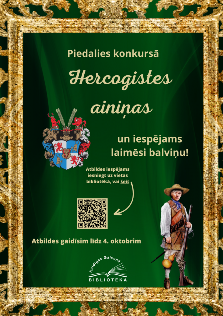 Konkurss norisināsies līdz 4. oktobrim (ieskaitot). Atbildes iespējams iesniegt elektroniski: https://rb.gy/7e70n vai arī uz vietas bibliotēkā. Konkursa drukātās veidlapas pieejamas bibliotēkas 1. stāvā.