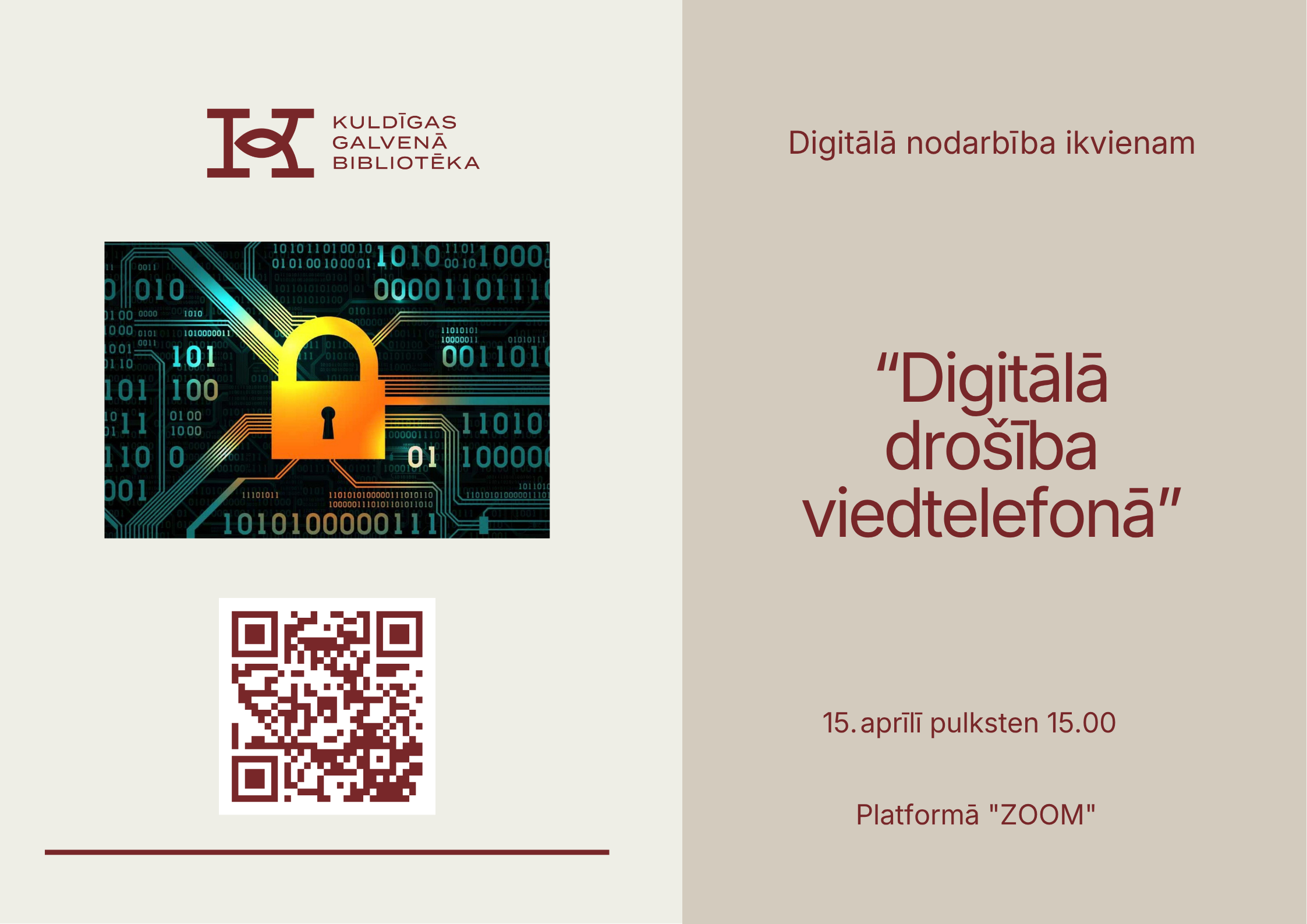 22. aprīlī plkst. 15.00 Kuldīgas Galvenās bibliotēkas Mākslas nama 3. stāvā notiks izglītojoša un praktiska nodarbība par krāpšanu un finanšu drošību "Kā pasargāt savu naudu no krāpniekiem?". Mūsdienās krāpšanas mēģinājumi kļūst arvien biežāki un pārliecinošāki - tie var būt telefona zvani, īsziņas vai e-pasti, kas izskatās pilnīgi ticami. Bieži vien pietiek ar vienu nepārdomātu soli, […]